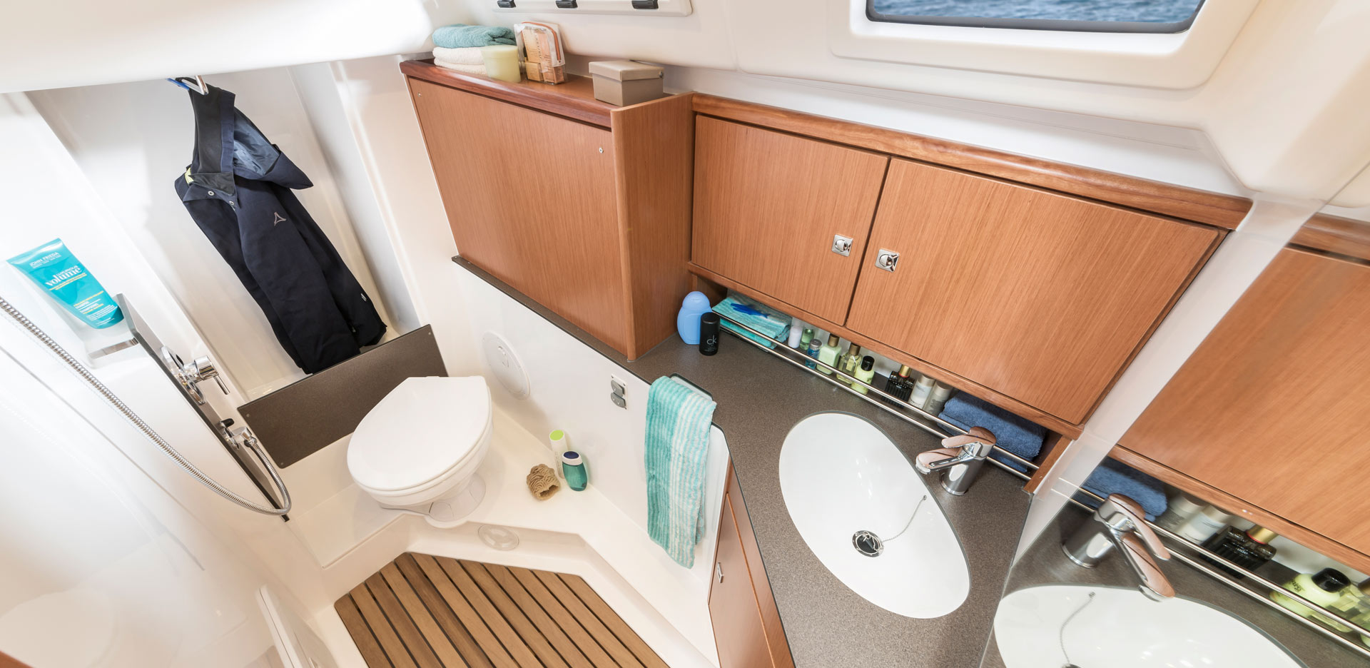 Sin compromisos debajo de la cubierta. Incluso en la versión más pequeña de 2 cabinas del CRUISER 34 tiene todas las comodidades que necesita debajo de la cubierta para un crucero. Un salón grande y luminoso – gracias a las cargas de luz natural. Una cocina funcional y una esquina para que el capitán trabaje y haga la planificación. En resumen, un espacio con muchas opciones bien concebidas. Típicamente BAVIERA.