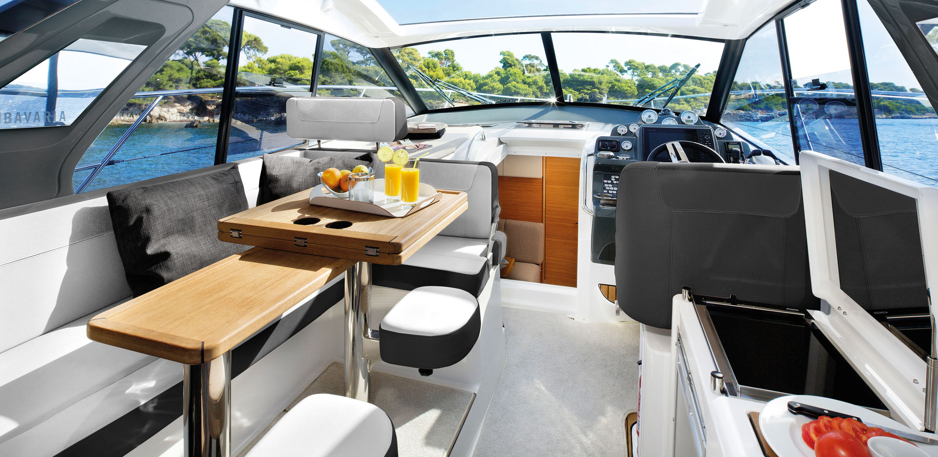El diseño de cada BAVARIA se caracteriza por nuestra falta de compromiso y la BAVARIA S36 no es la excepción. Esto, por ejemplo, ha dado como resultado un espacio máximo y una amplia luz en el área de la cabina. Todo ha sido diseñado para ser maravillosamente brillante y con gran atención al detalle. El helmstand ahora tiene un diseño excepcionalmente ergonómico, todos los instrumentos están a la vista e intuitivos para operar para un mayor placer de conducción.