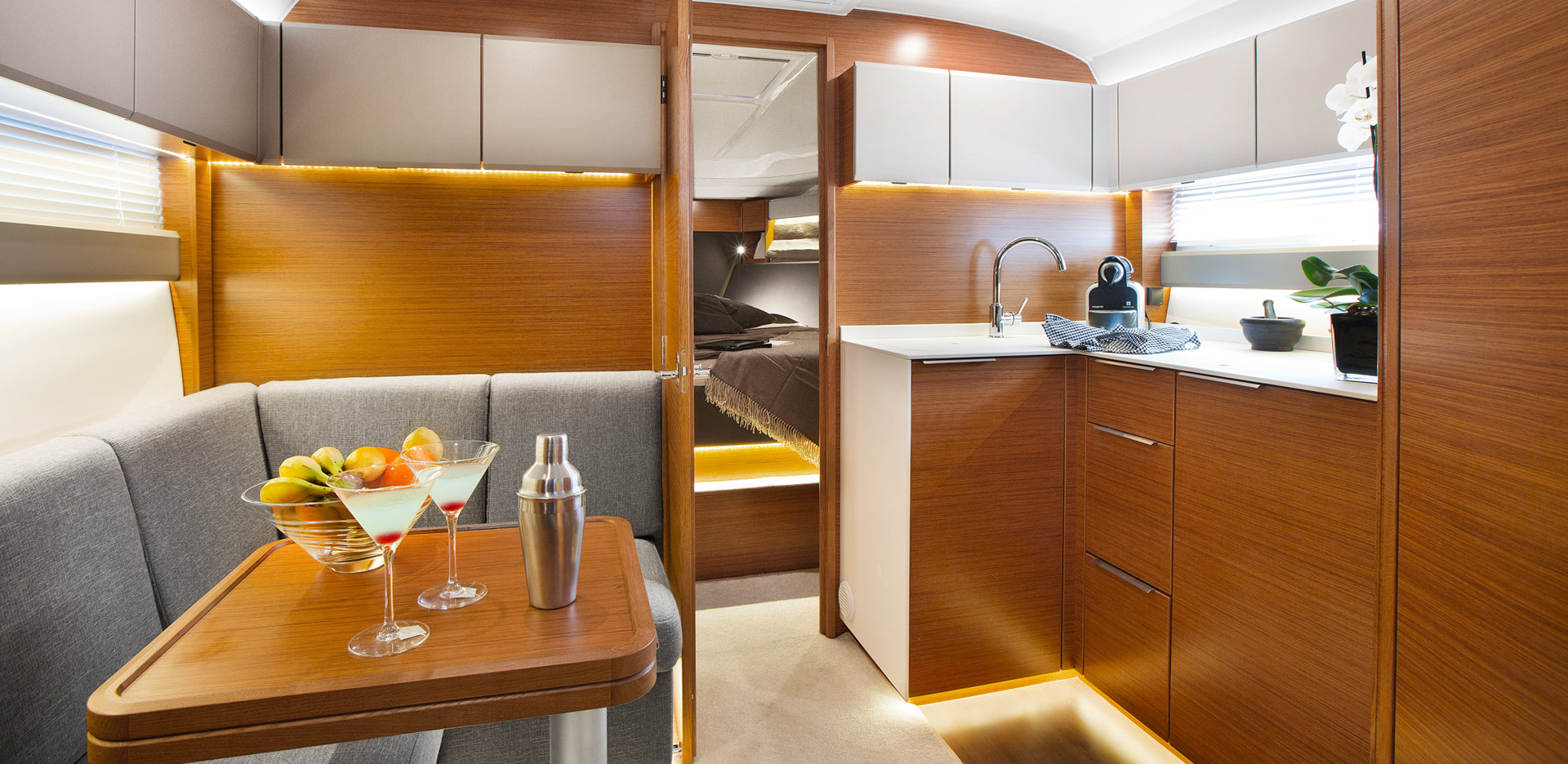 Debajo de la cubierta el BAVARIA S36 ofrece una miríada de opciones. Por ejemplo, cuando se trata de tejidos y acabados de madera, puede personalizar las características para adaptarse a su gusto personal. En cuanto a los materiales, y también la madera. Pero una cosa que todos los materiales tienen en común es que son de primera calidad. Eso significa bienestar garantizado.