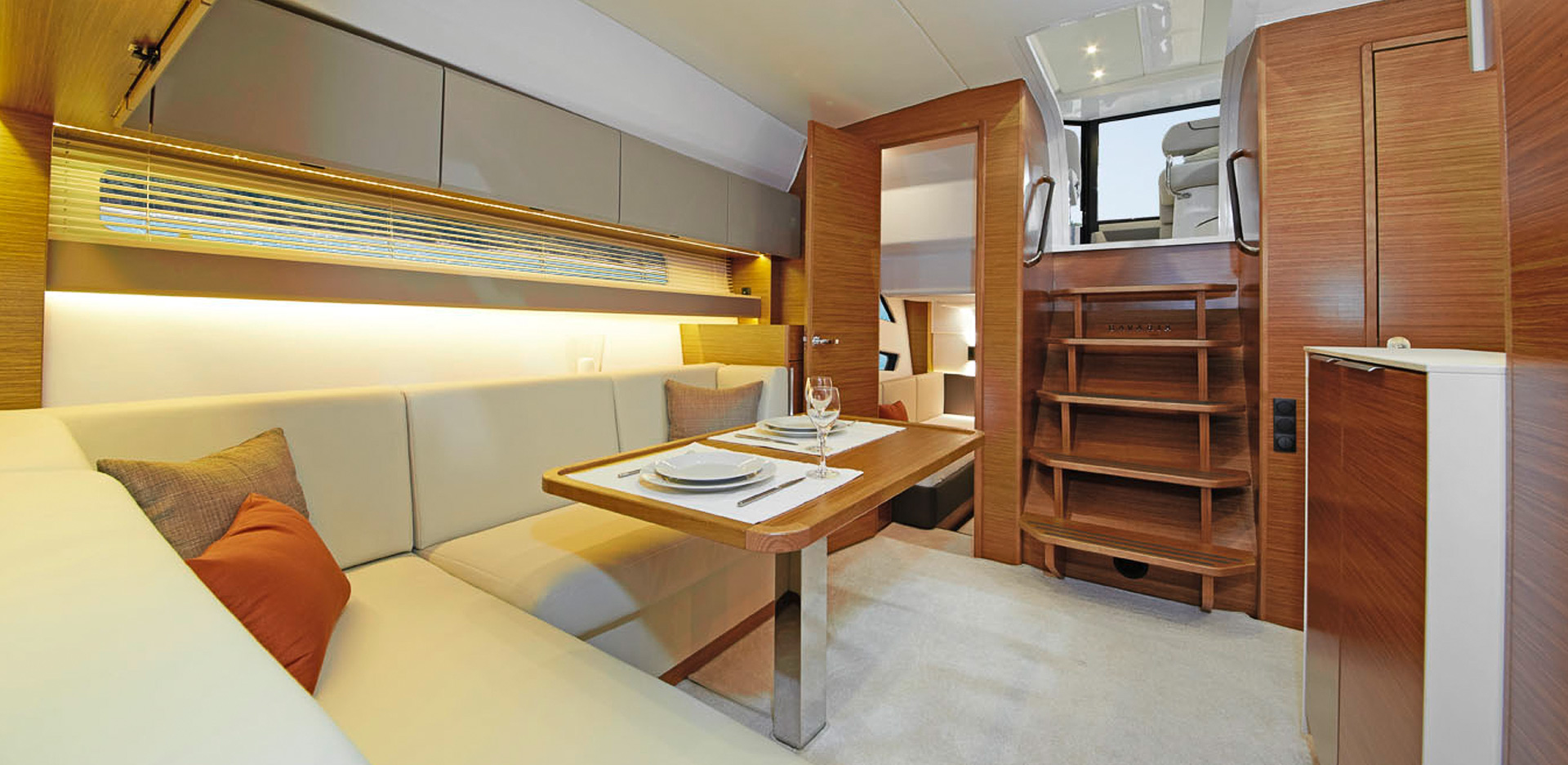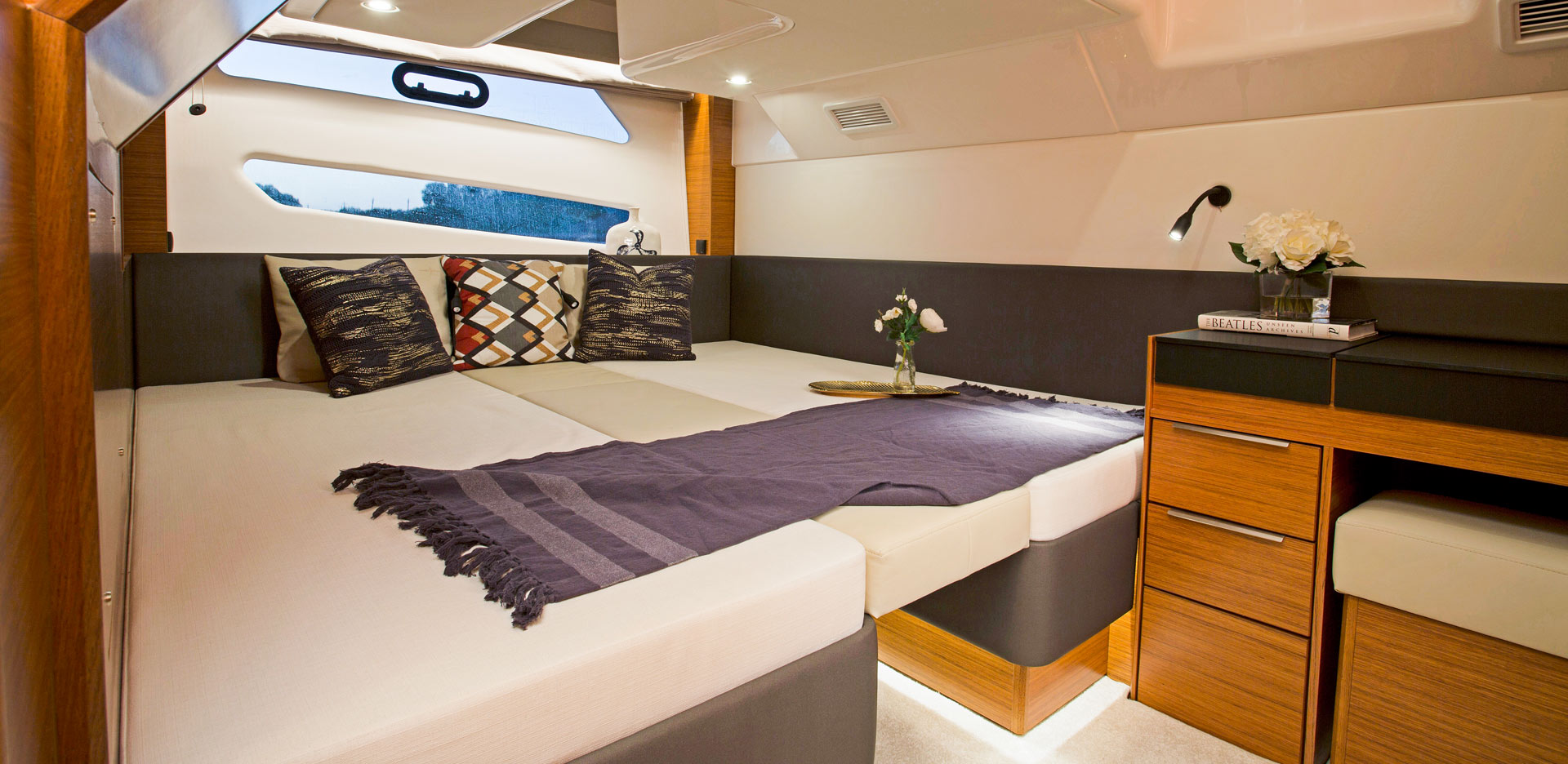 Un yate es siempre una expresión de personalidad, de estilo individual. Aquí BAVARIA no deja nada que desear. Numerosas opciones hacen posible individualizar su BAVARIA, desde el sistema de iluminación LED regulable a la elección de tejidos y madera. Todo está hecho para hacer que usted y todos los demás a bordo se sientan cómodos, porque eso es lo que realmente cuenta.